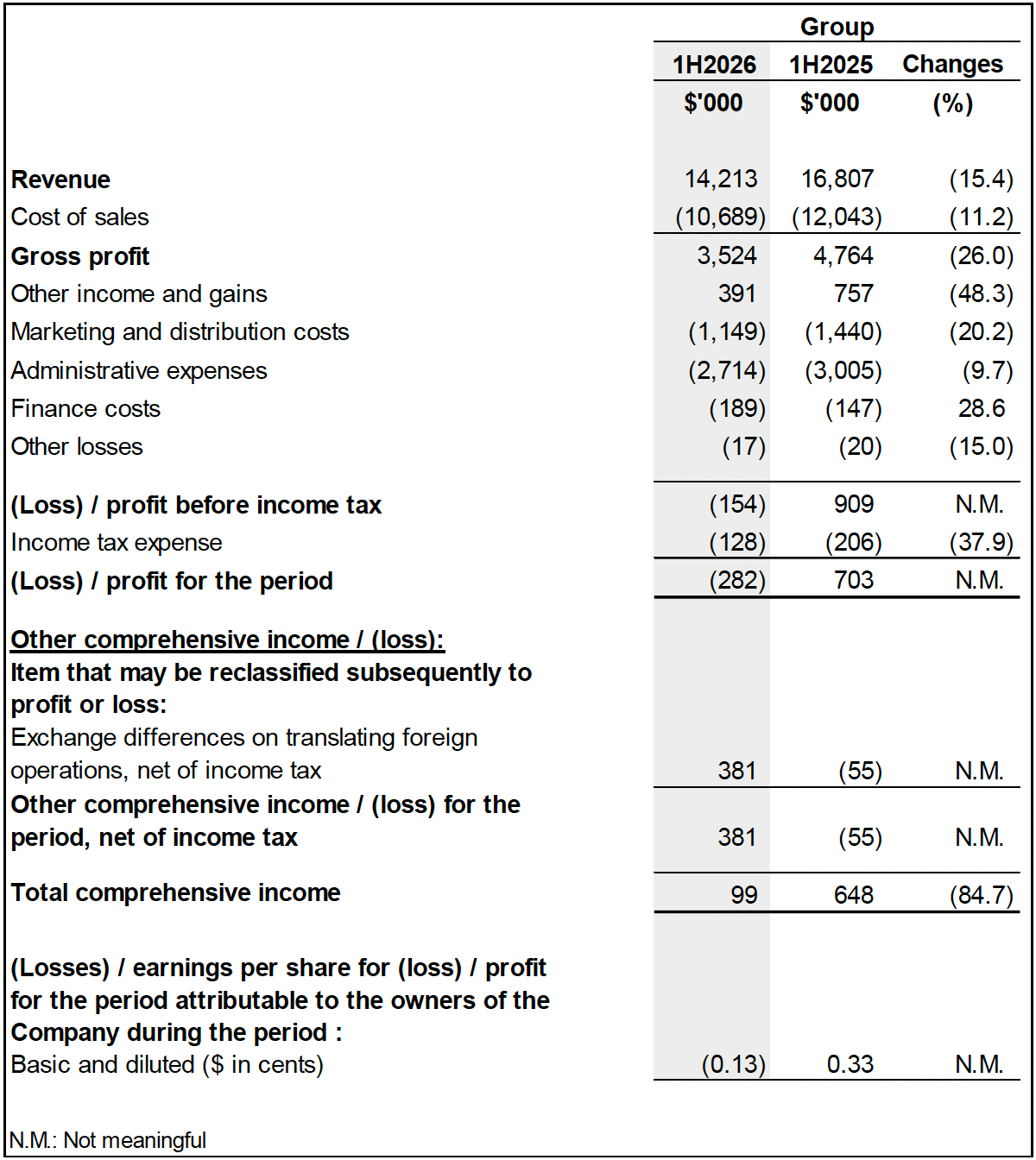 As a result of the above, the Group recorded a loss after tax of approximately $0.3 million in 1H2026, compared to a profit after tax of $0.7 million in 1H2025.